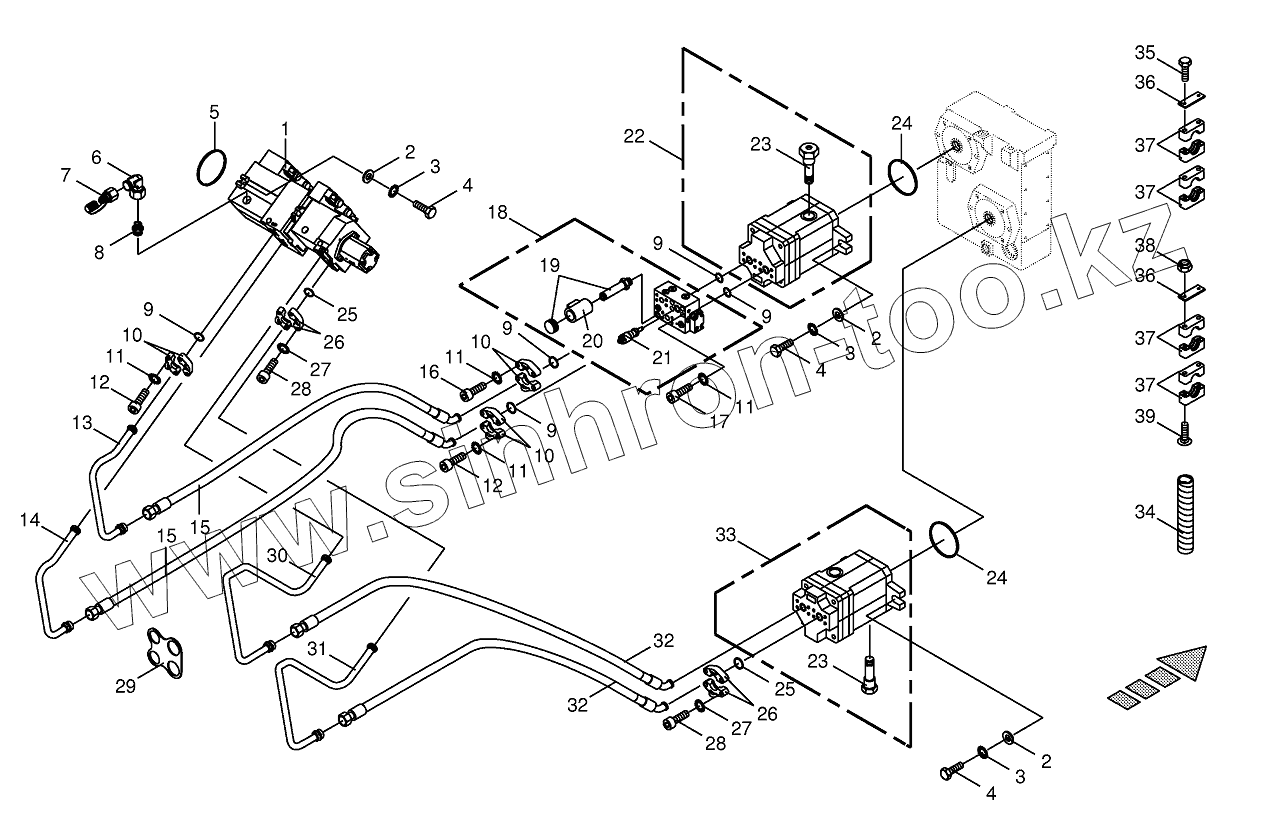 Каталог запасных частей к технике: KRONE BIG-X-650. Hydraulics-front attachment/feed rollers