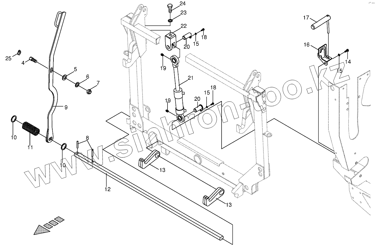 Каталог запасных частей к технике: KRONE BIG-X-650. Lateral flotation system/Locking mech.