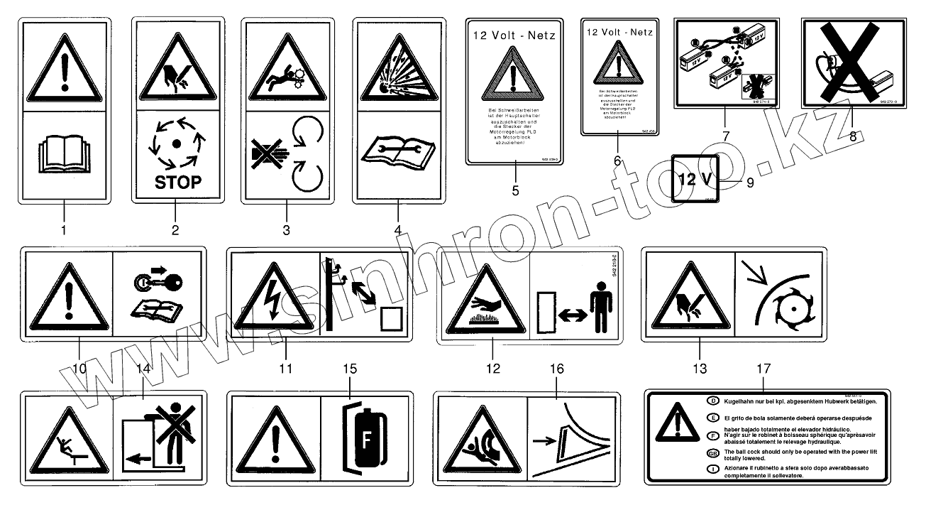 Каталог запасных частей к технике: KRONE BIG-X-650. Warning signs
