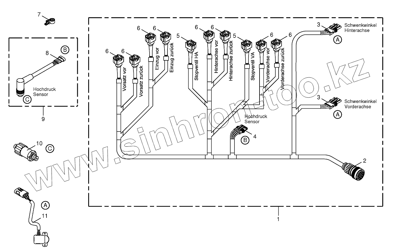 Каталог запасных частей к технике: KRONE BIG-X-650. Wiring loom-hydraulic pumps