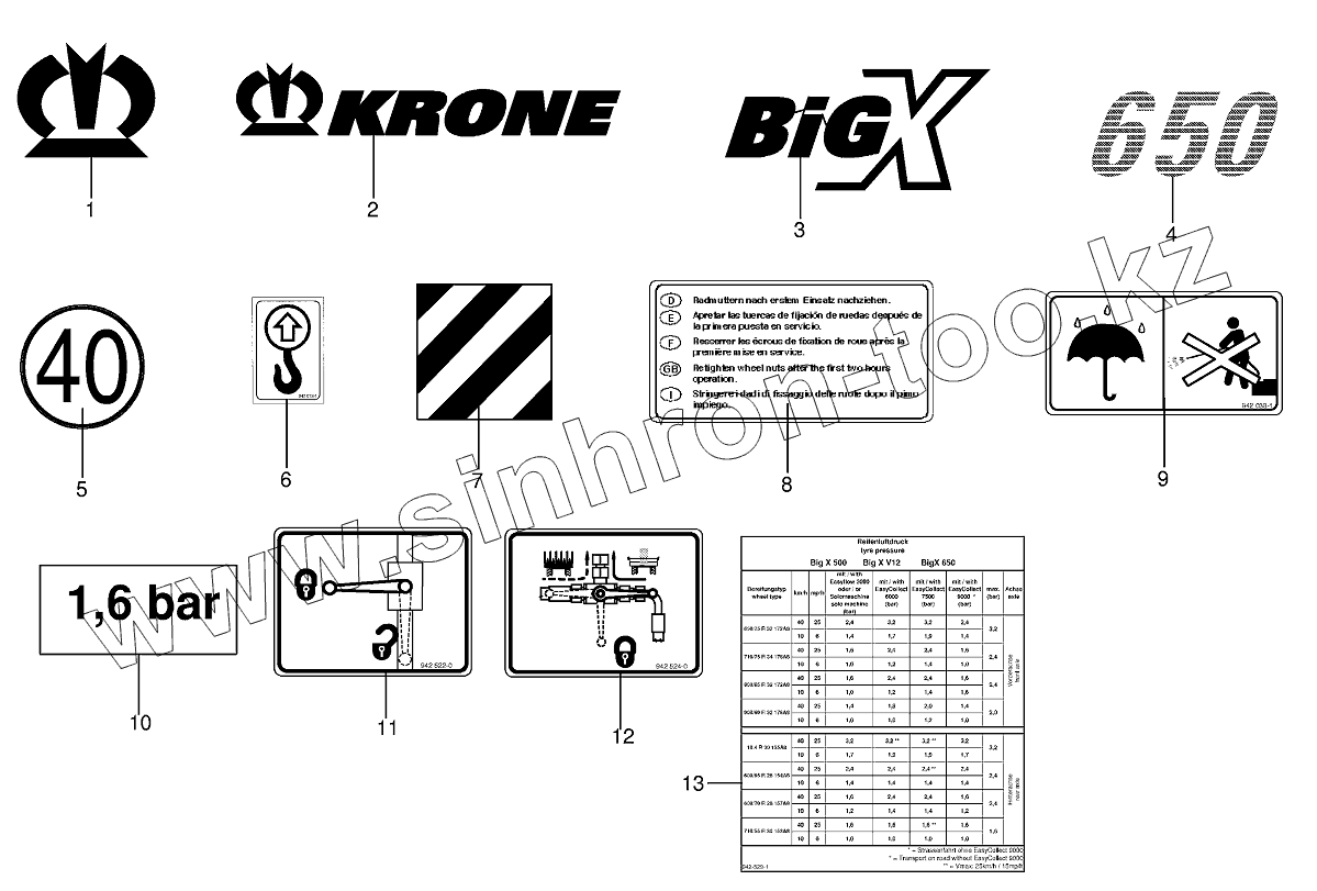 Каталог запасных частей к технике: KRONE BIG-X-650. General information labels