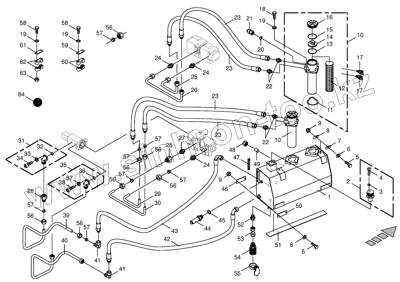 Каталог запасных частей к технике: KRONE BIG-X-650. Hydraulic tank/suction lines