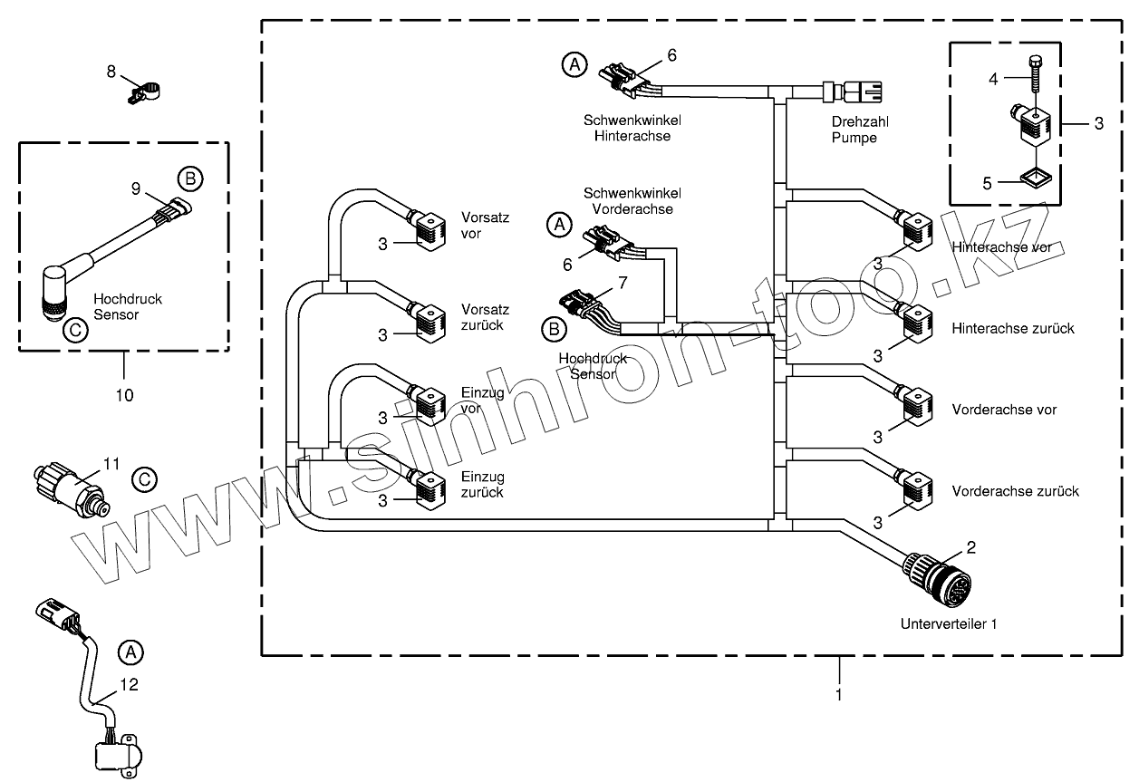 Каталог запасных частей к технике: KRONE BIG-X-650. Wiring loom-hydraulic pumps