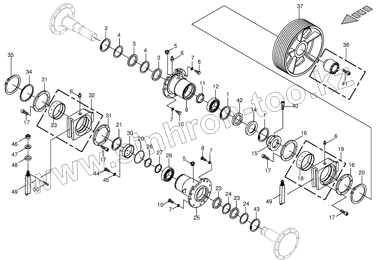 Каталог запасных частей к технике: KRONE BIG-X-650. Chopping drum bearing/counter bearing