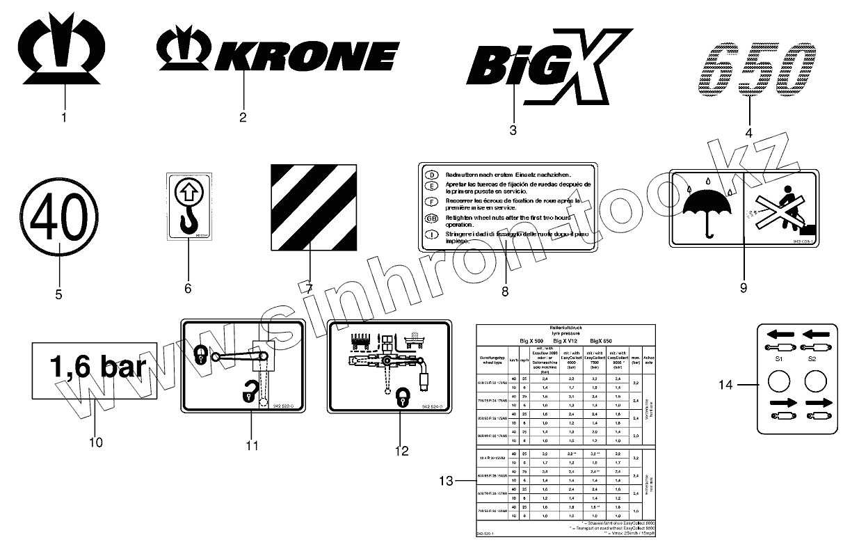 Каталог запасных частей к технике: KRONE BIG-X-650. General information labels