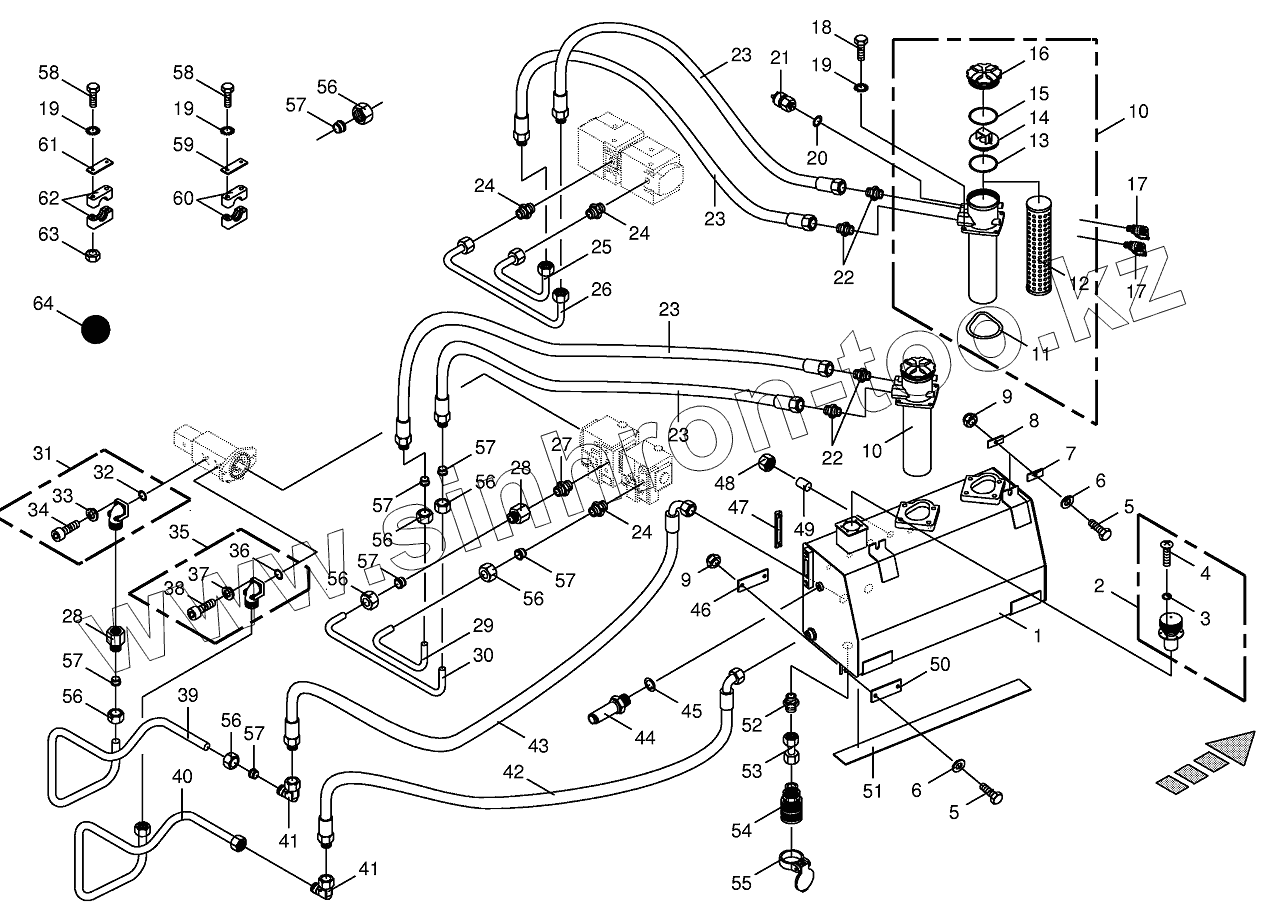 Каталог запасных частей к технике: KRONE BIG-X-650. Hydraulic tank/suction lines