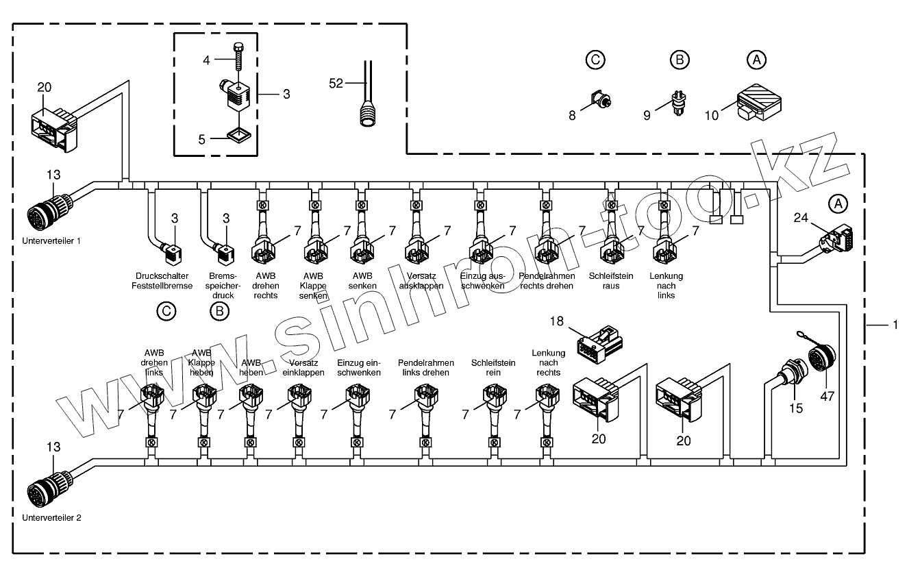 Каталог запасных частей к технике: KRONE BIG-X-650. Wiring Harness-valve lock