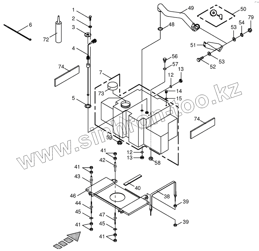 Каталог запасных частей к технике: KRONE BIG-X-650. Additional tank for silage agent system