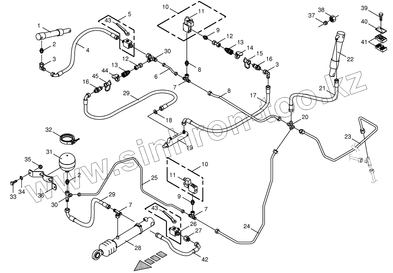 Каталог запасных частей к технике: KRONE BIG-X-650. Charge pressure lines- front