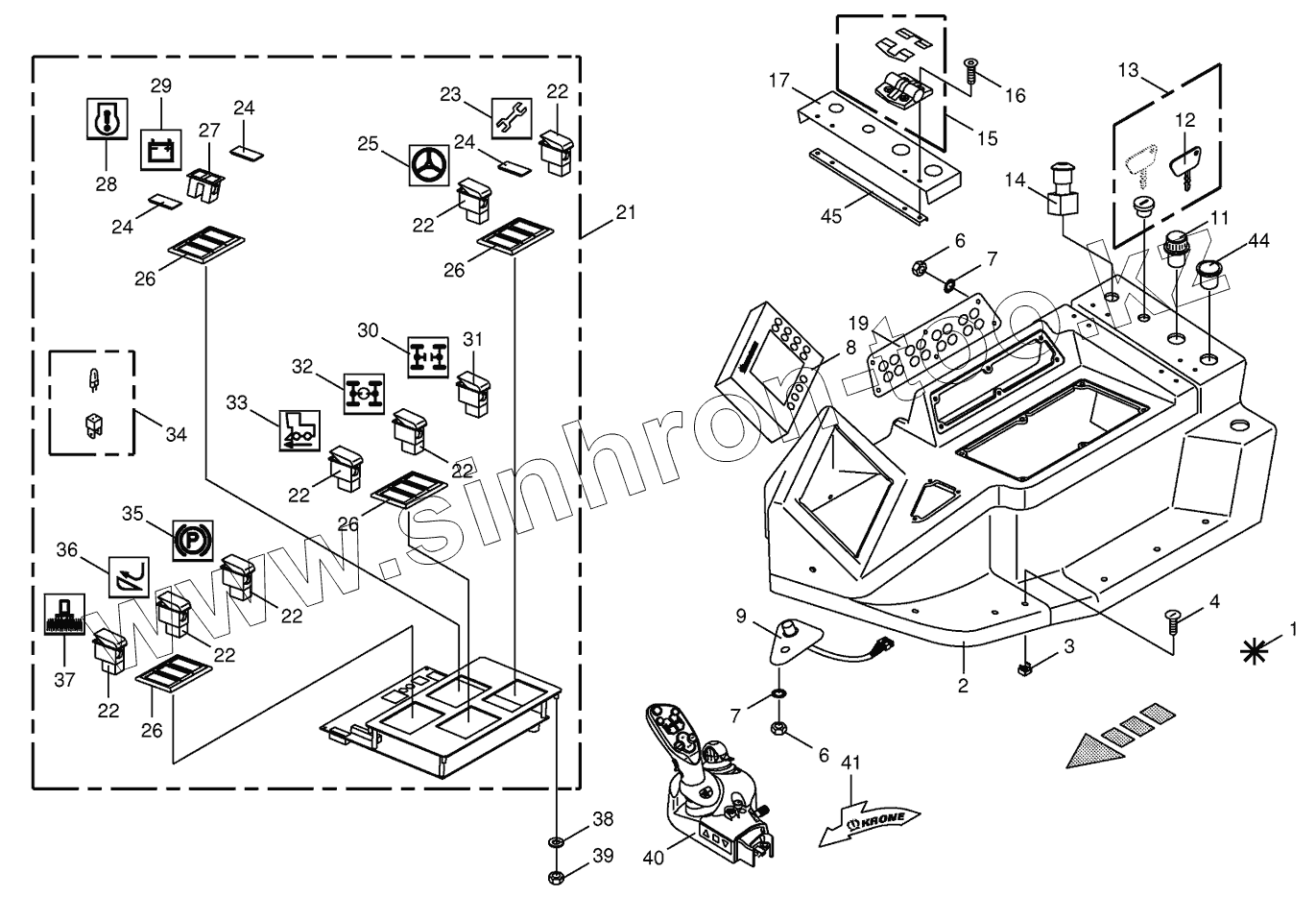 Каталог запасных частей к технике: KRONE BIG-X-650. Control box mounting parts-top