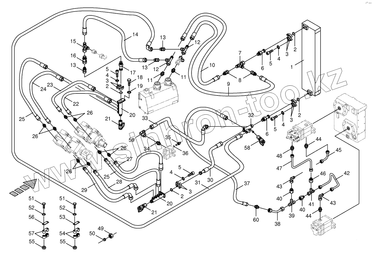 Каталог запасных частей к технике: KRONE BIG-X-650. Housing line/oil cooler