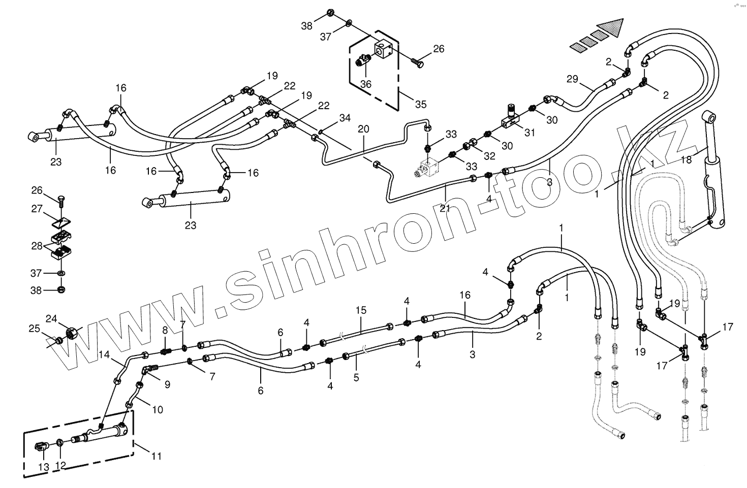 Каталог запасных частей к технике: KRONE BIG-X-650. Hydraulics- discharge chute- 14-row