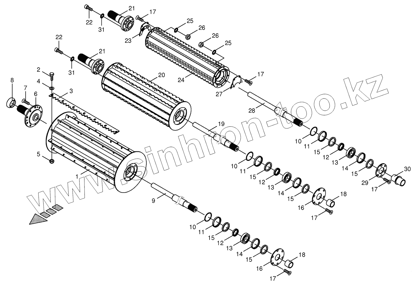 Каталог запасных частей к технике: KRONE BIG-X-650. Top feed rollers