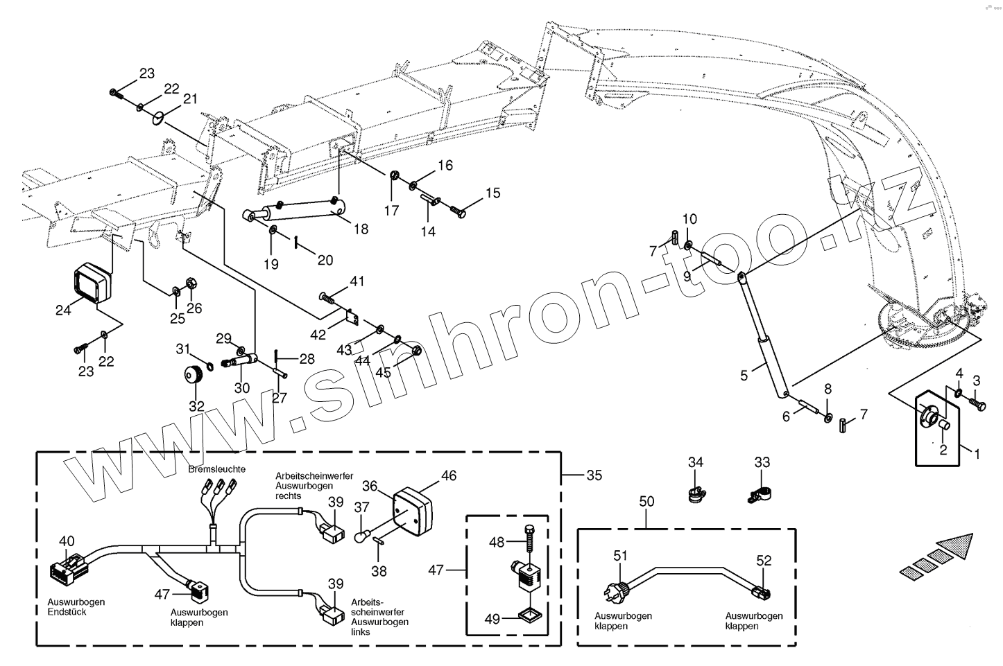 Каталог запасных частей к технике: KRONE BIG-X-650. Upper discharge chute- mounting parts 14-row