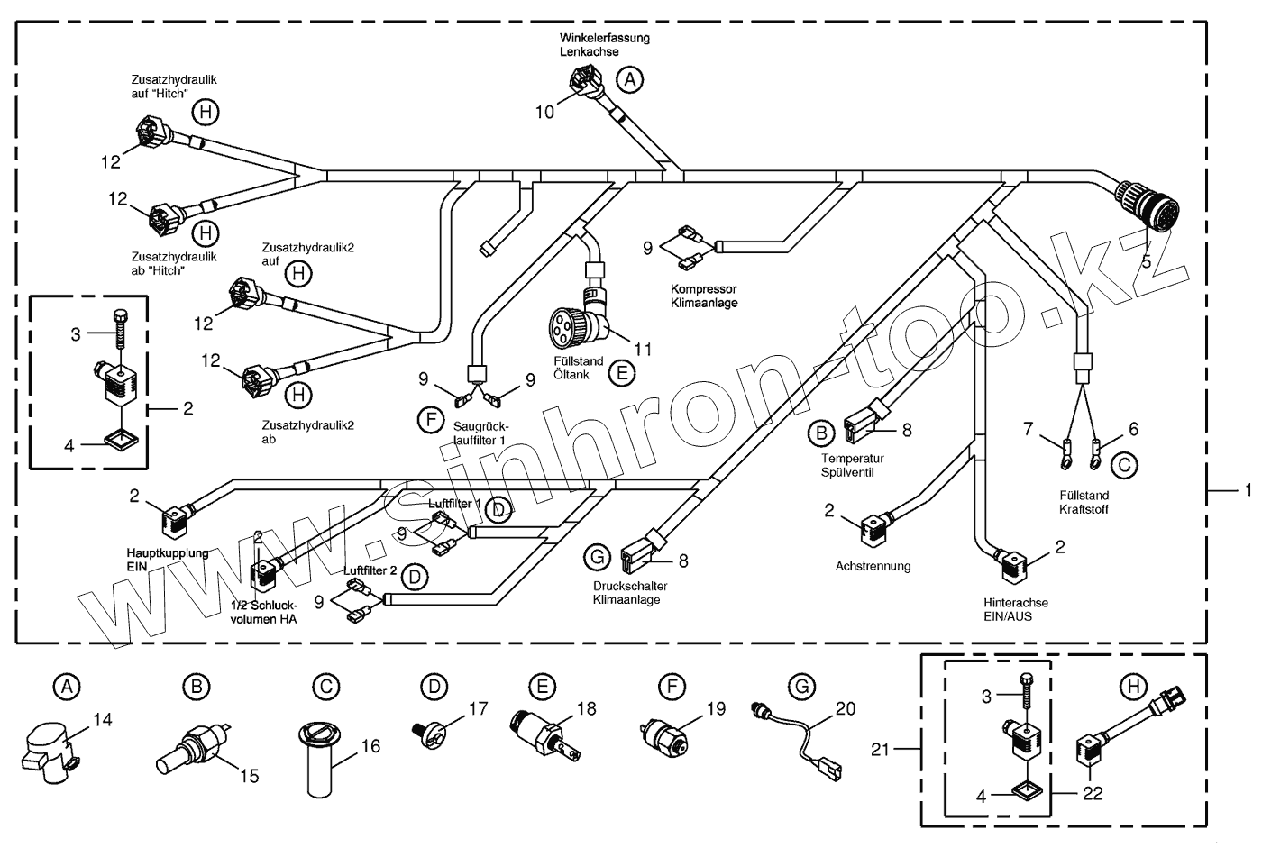 Каталог запасных частей к технике: KRONE BIG-X-650. Wiring Harness- rear/drive valve