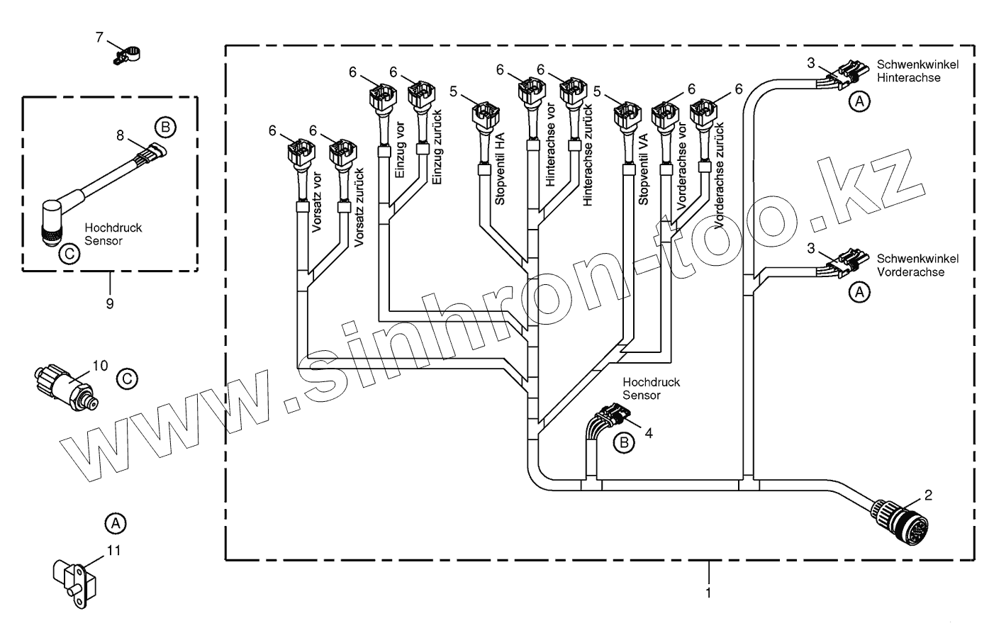 Каталог запасных частей к технике: KRONE BIG-X-650. Wiring loom- hydraulic pumps