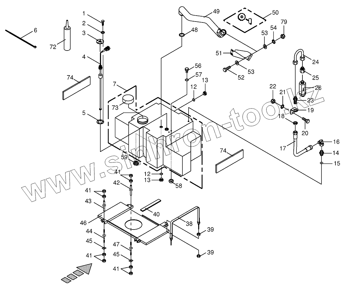 Каталог запасных частей к технике: KRONE BIG-X-650. Additional tank for silage agent system