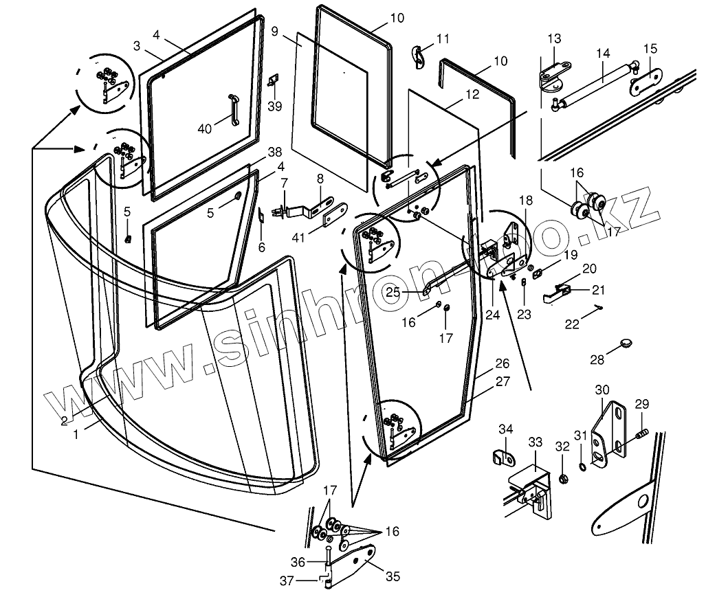 Каталог запасных частей к технике: KRONE BIG-X-650. Cab - glazing