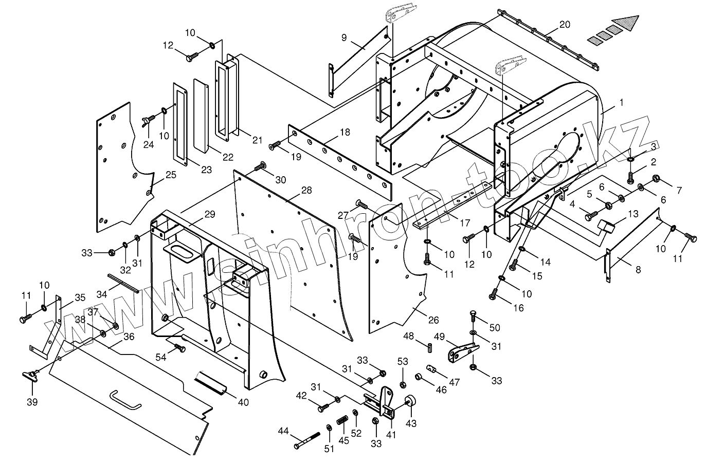 Каталог запасных частей к технике: KRONE BIG-X-650. Discharge accelerator housinge -spring-mounted