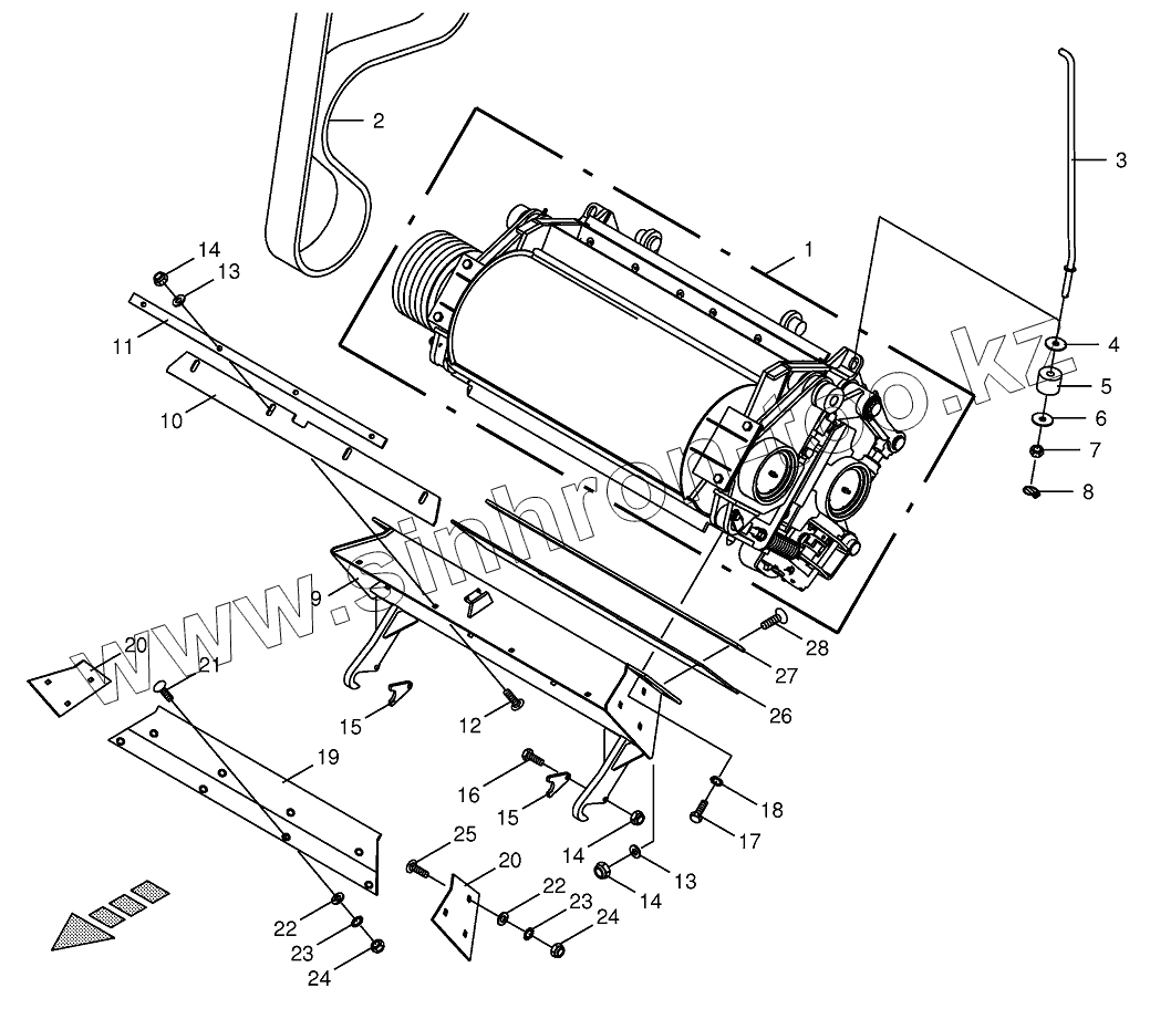Каталог запасных частей к технике: KRONE BIG-X-650. Grain conditioner cpl. / cracker duct -spring-mounted