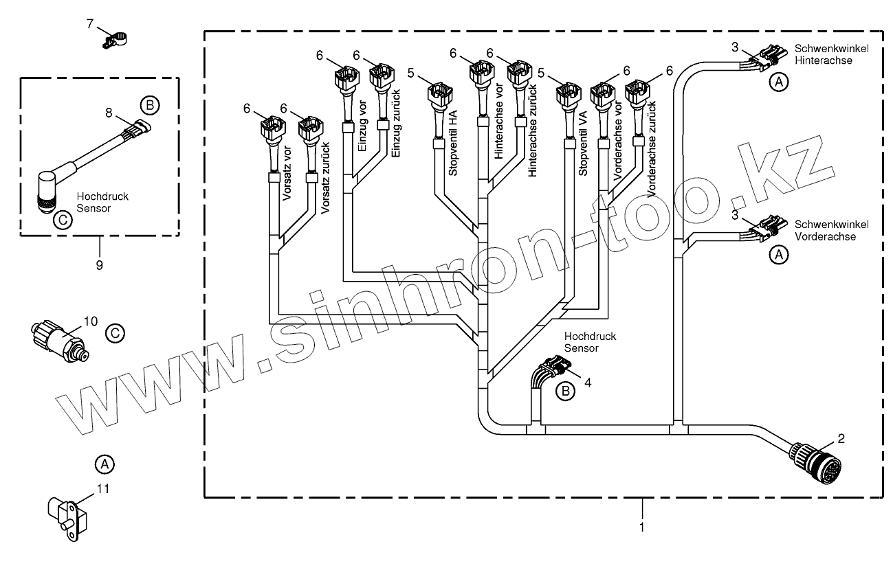 Каталог запасных частей к технике: KRONE BIG-X-650. Wiring loom - hydraulic pumps