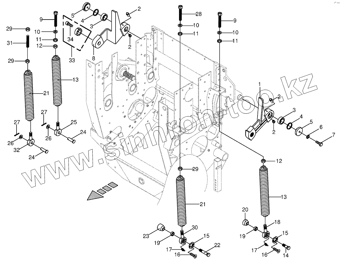 Каталог запасных частей к технике: KRONE BIG-X-650. Oscillating levers/Tension spring