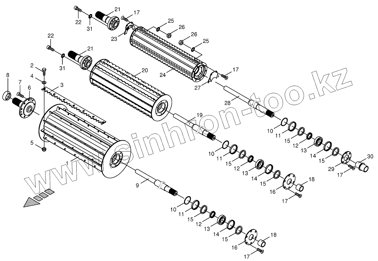 Каталог запасных частей к технике: KRONE BIG-X-650. Top feed rollers