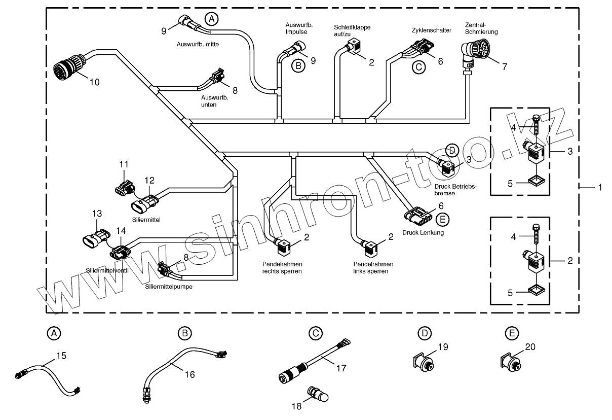 Каталог запасных частей к технике: KRONE BIG-X-650. Wiring harness-below the cabin