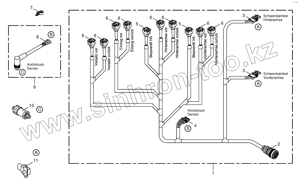 Каталог запасных частей к технике: KRONE BIG-X-650. Wiring loom-hydraulic pumps