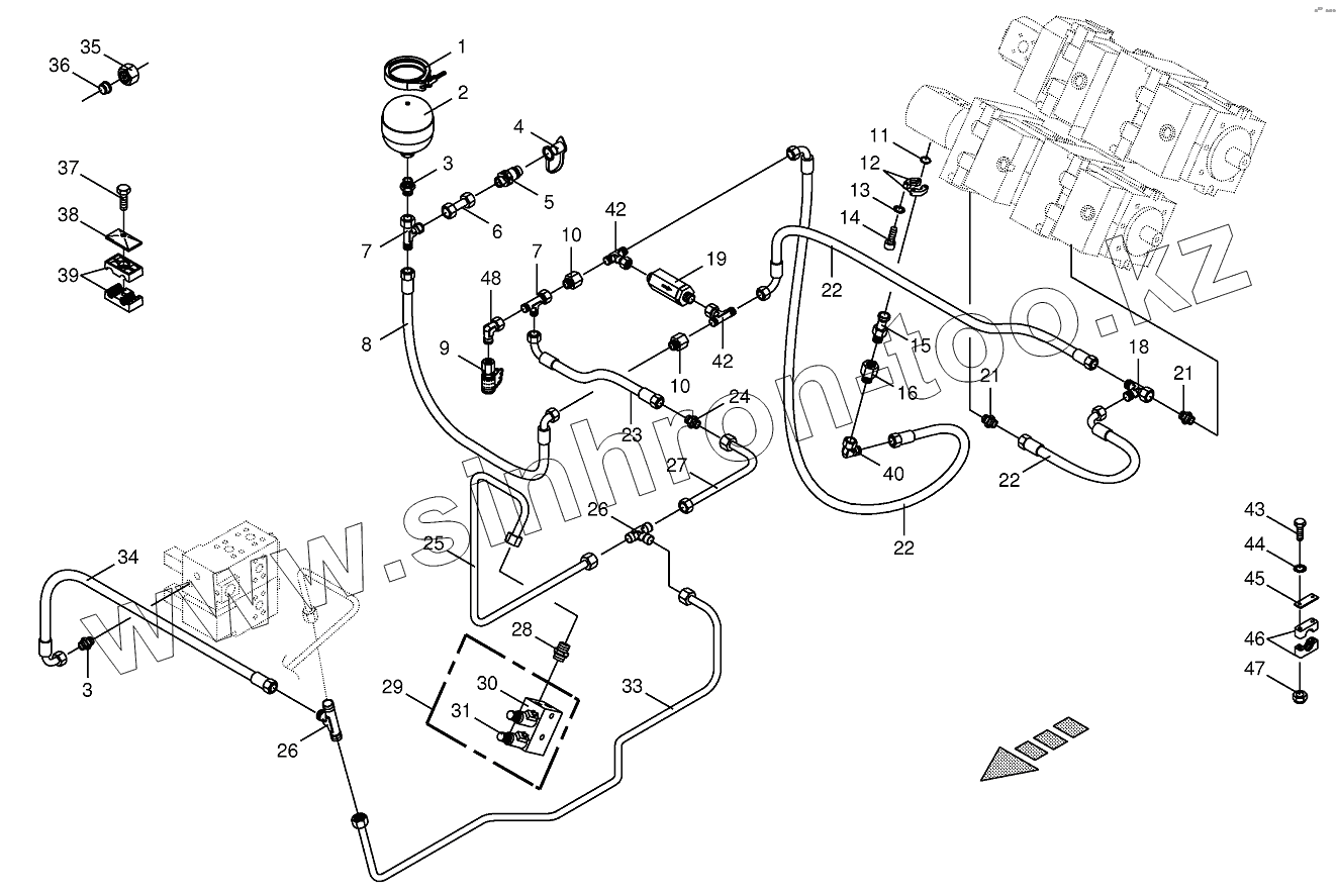 Каталог запасных частей к технике: KRONE BIG-X-650. Charge pressure lines-back