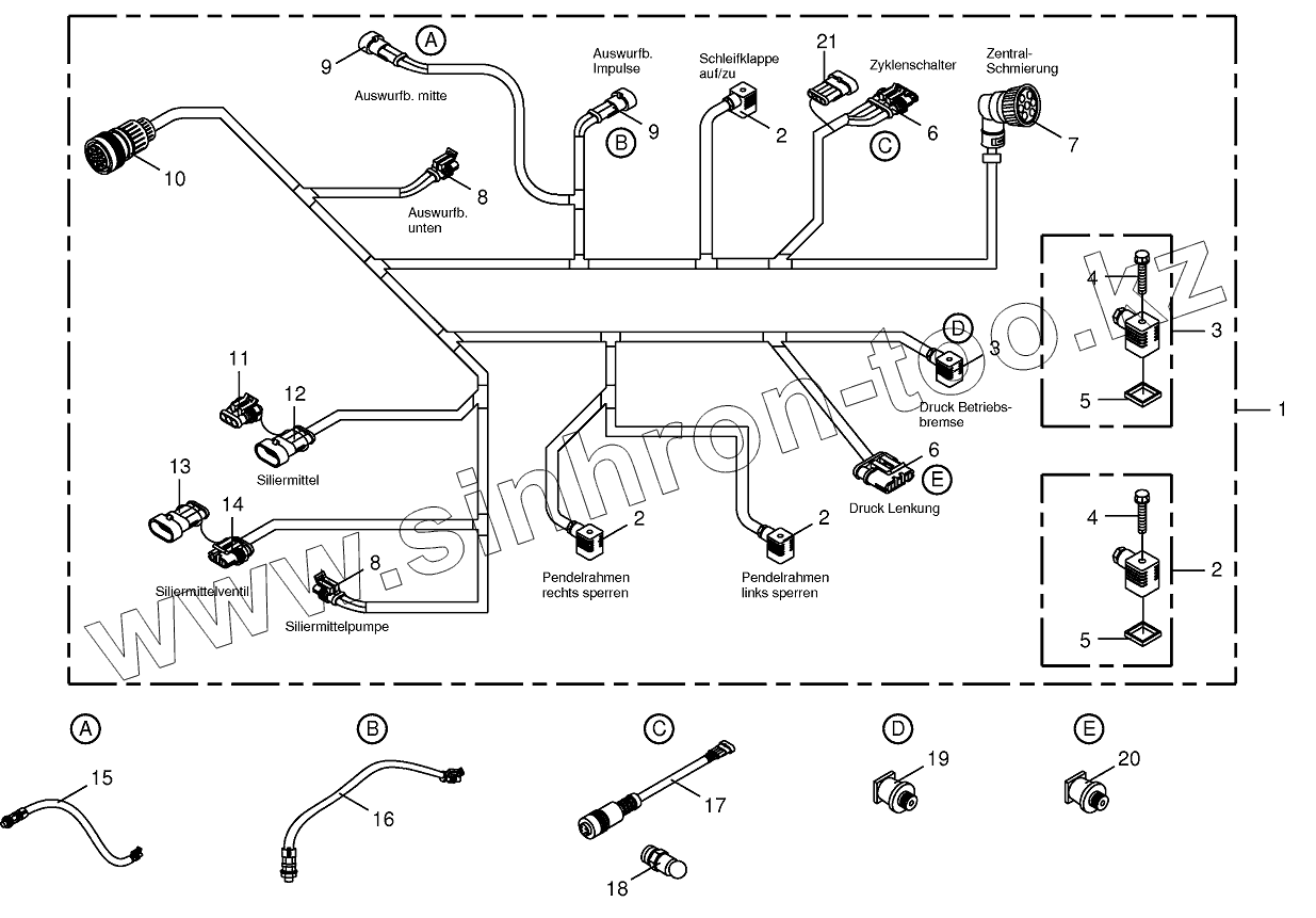 Каталог запасных частей к технике: KRONE BIG-X-650. Wiring harness-below the cabin