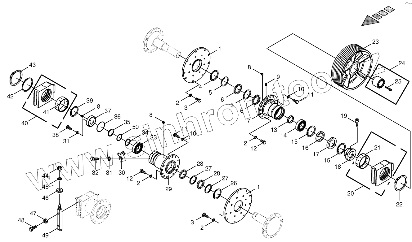 Каталог запасных частей к технике: KRONE BIG-X-700. Chopping drum bearing/counter bearing