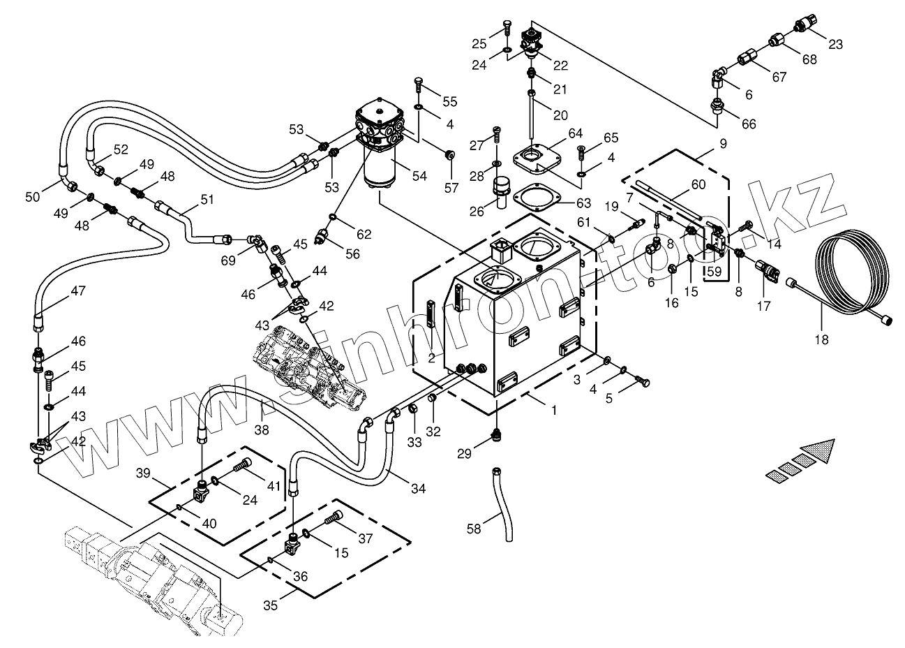 Каталог запасных частей к технике: KRONE BIG-X-700. Hydraulic tank/suction lines