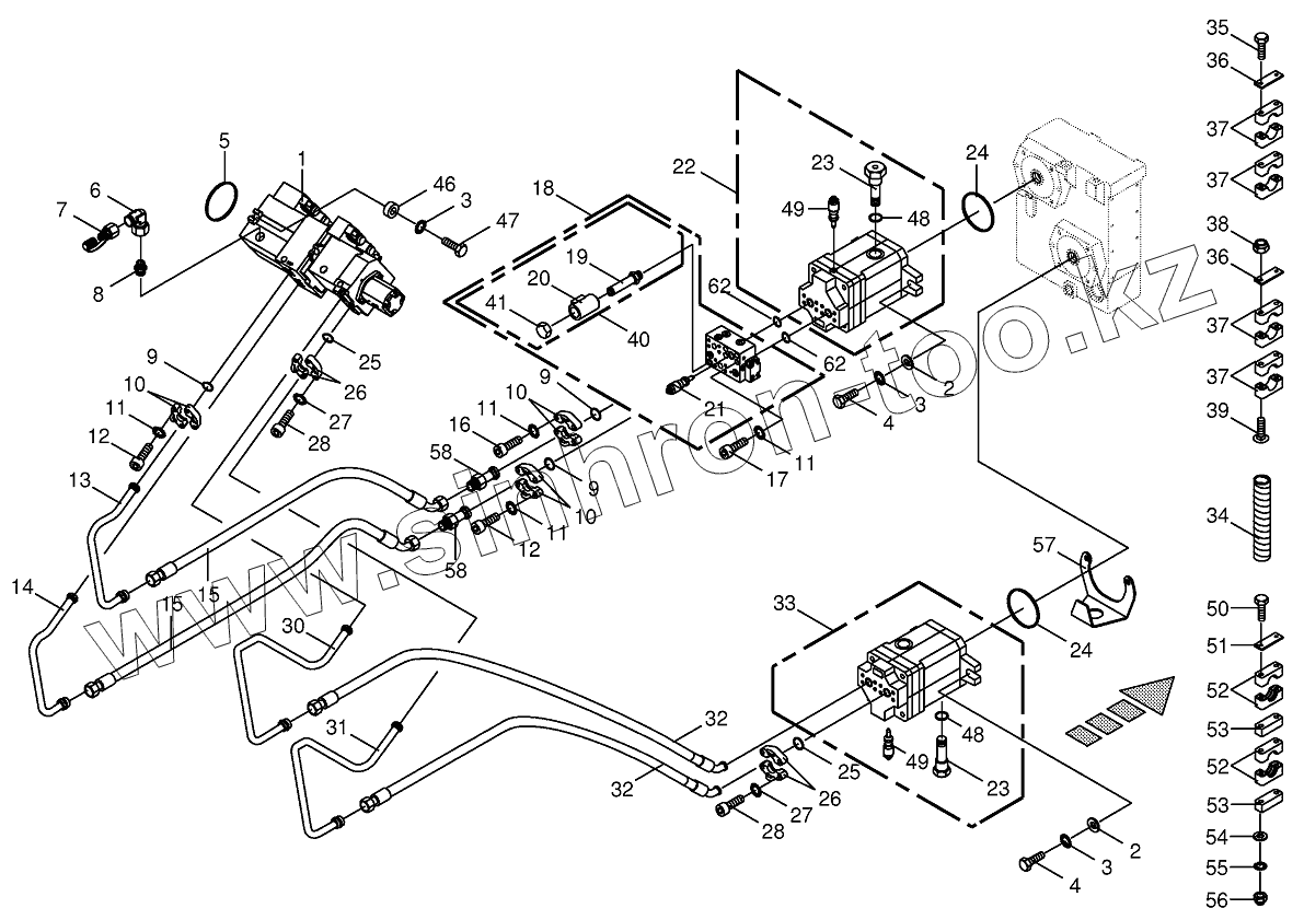 Каталог запасных частей к технике: KRONE BIG-X-700. Hydraulics-front attachment/feed rollers