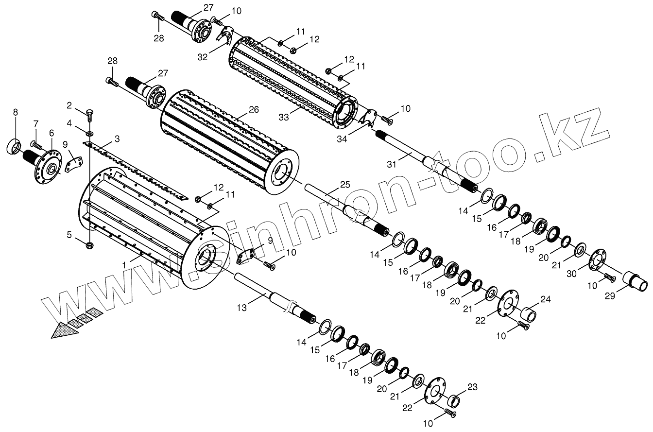 Каталог запасных частей к технике: KRONE BIG-X-700. Top feed rollers