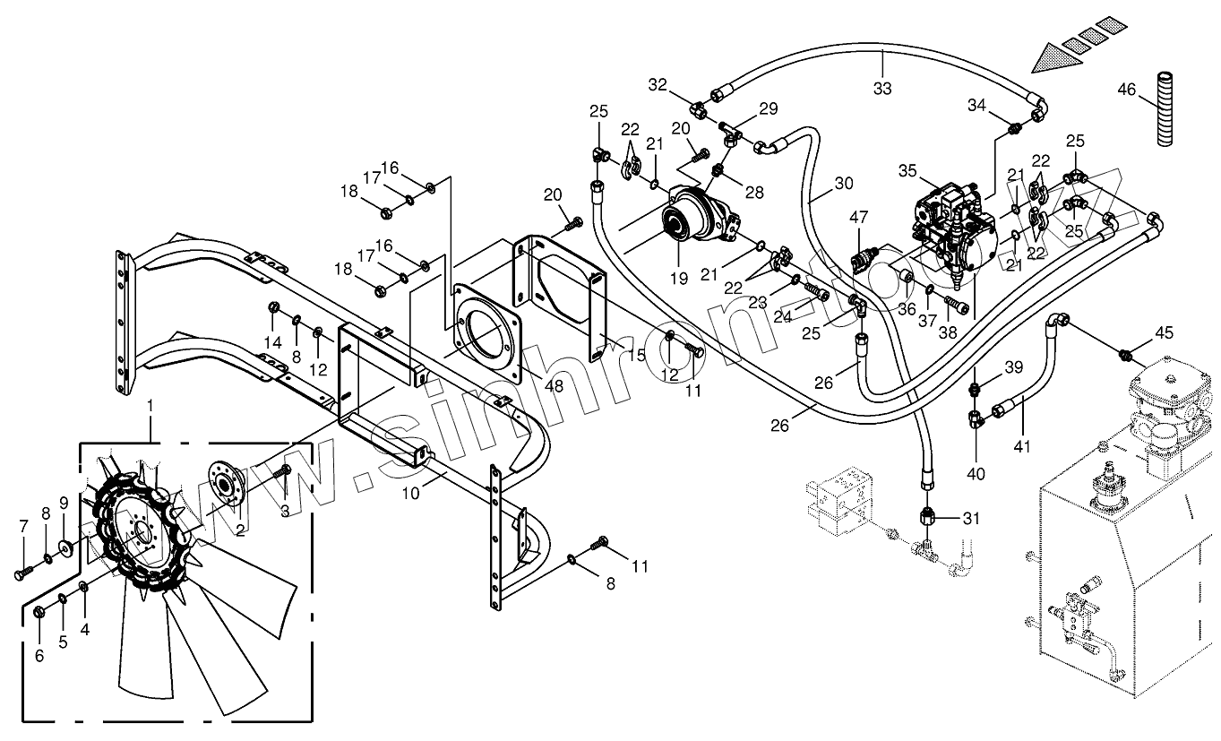 Каталог запасных частей к технике: KRONE BIG-X-700. Ventilator wheel/Drive