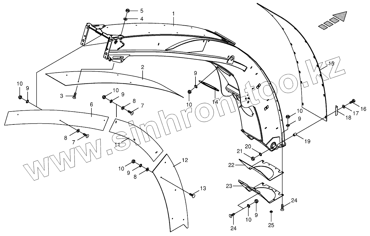 Каталог запасных частей к технике: KRONE BIG-X-700-1. Upper discharge chute with wear plates