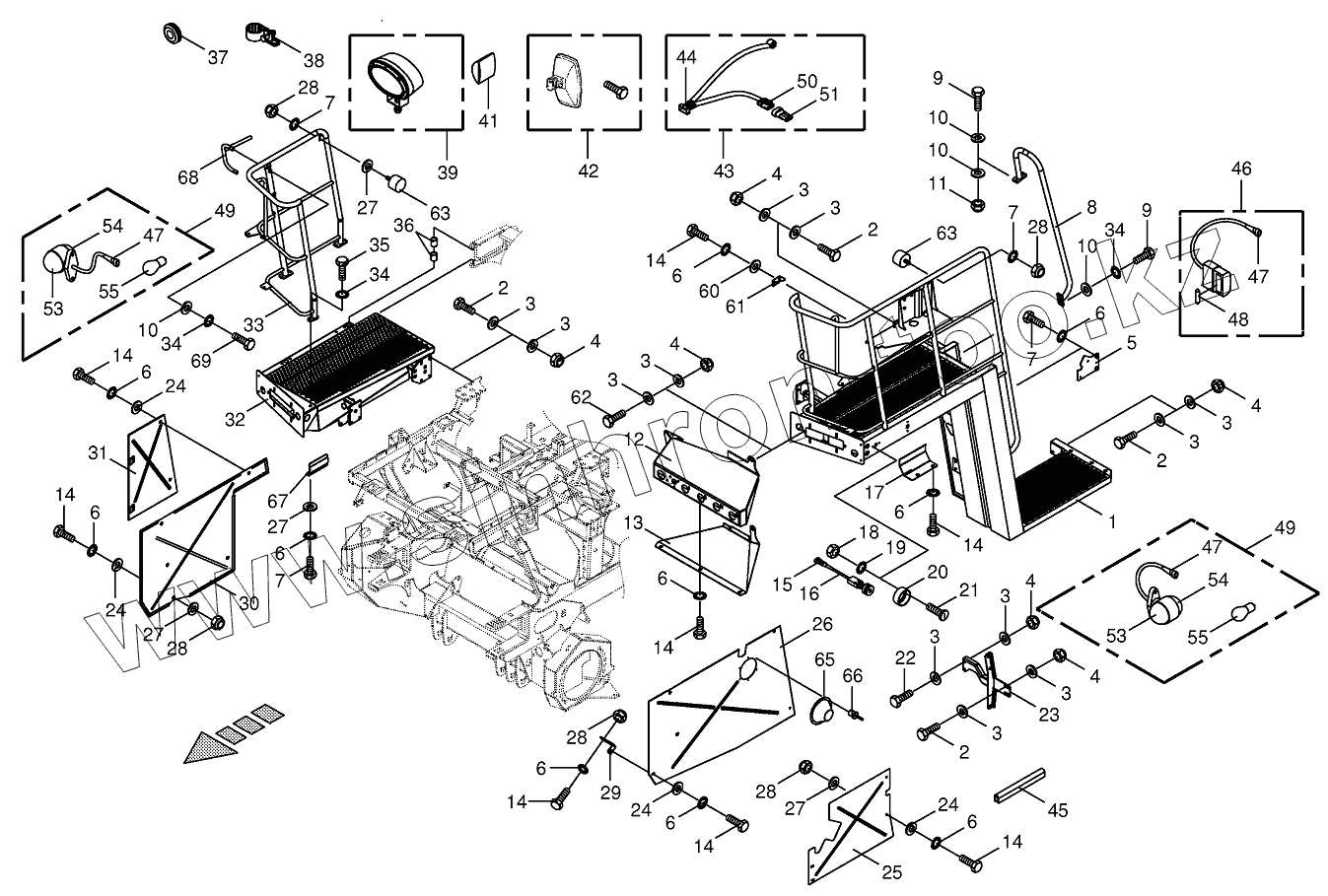 Каталог запасных частей к технике: KRONE BIG-X-700-1. Cab access left/platform right