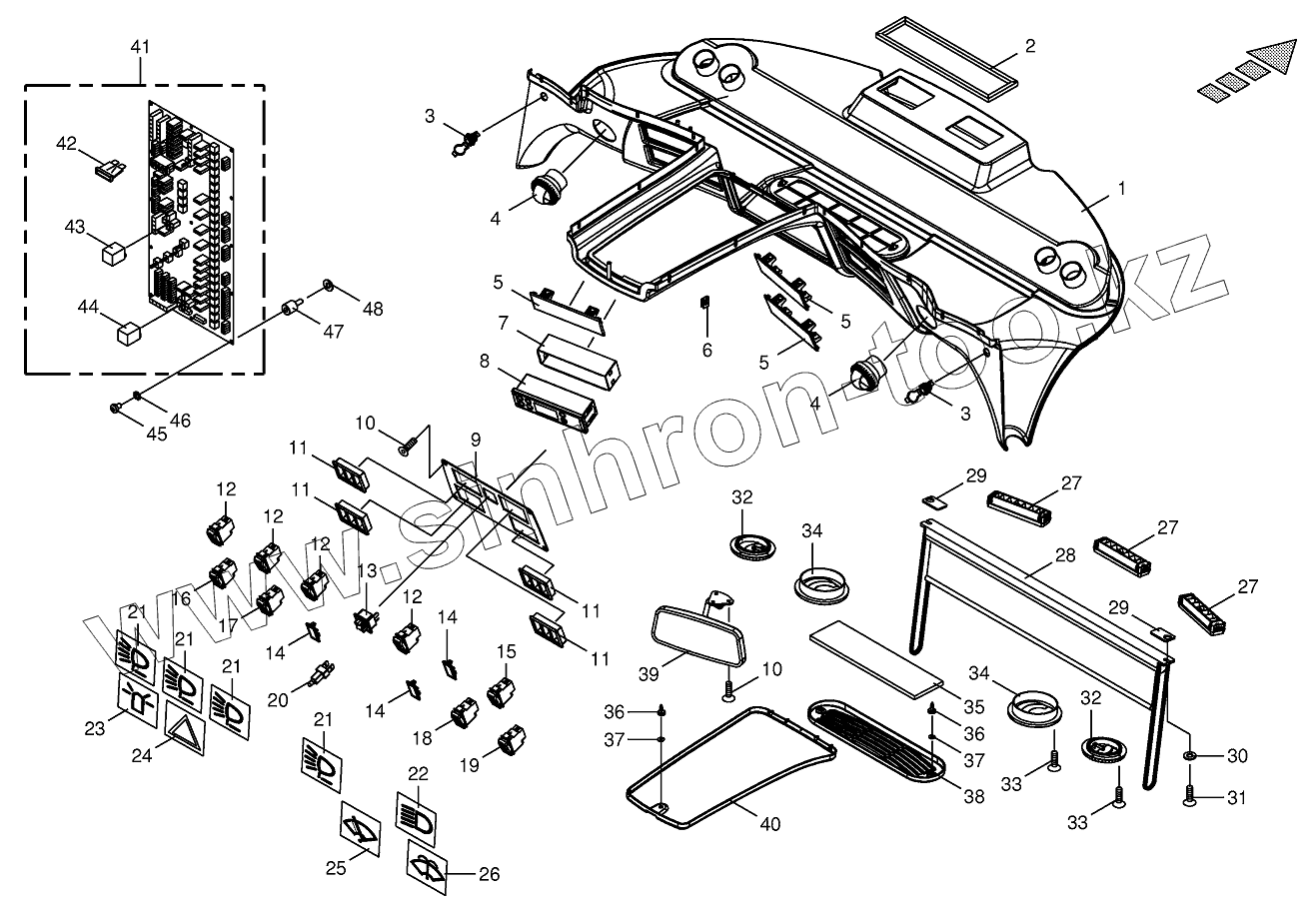 Каталог запасных частей к технике: KRONE BIG-X-700-1. Cab-control panel (roof)/circuit board
