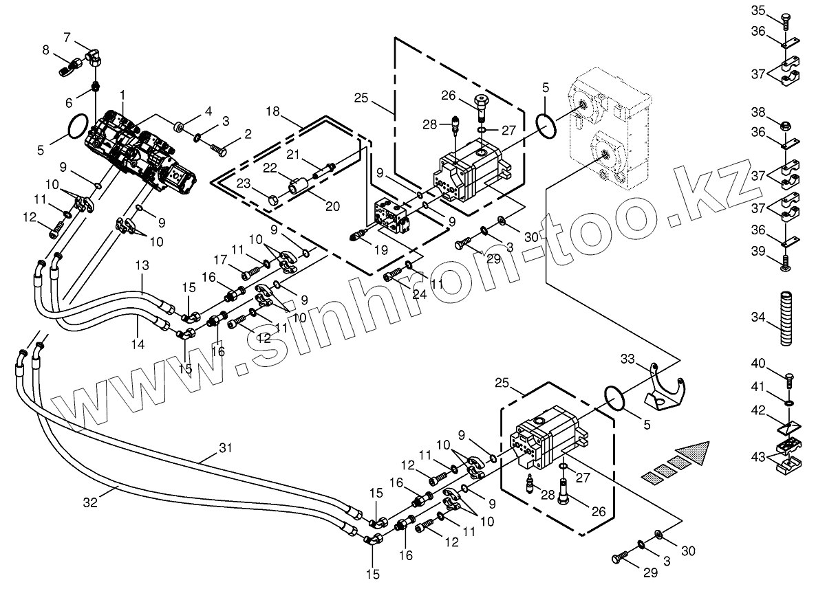Каталог запасных частей к технике: KRONE BIG-X-700-1. Hydraulics-front attachment/feed rollers