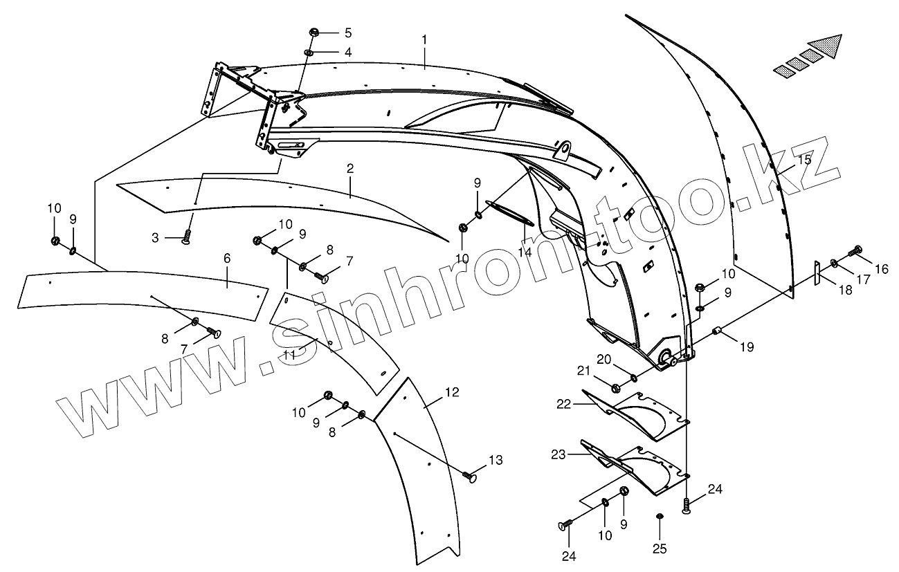 Каталог запасных частей к технике: KRONE BIG-X-700-1. Upper discharge chute with wear plates