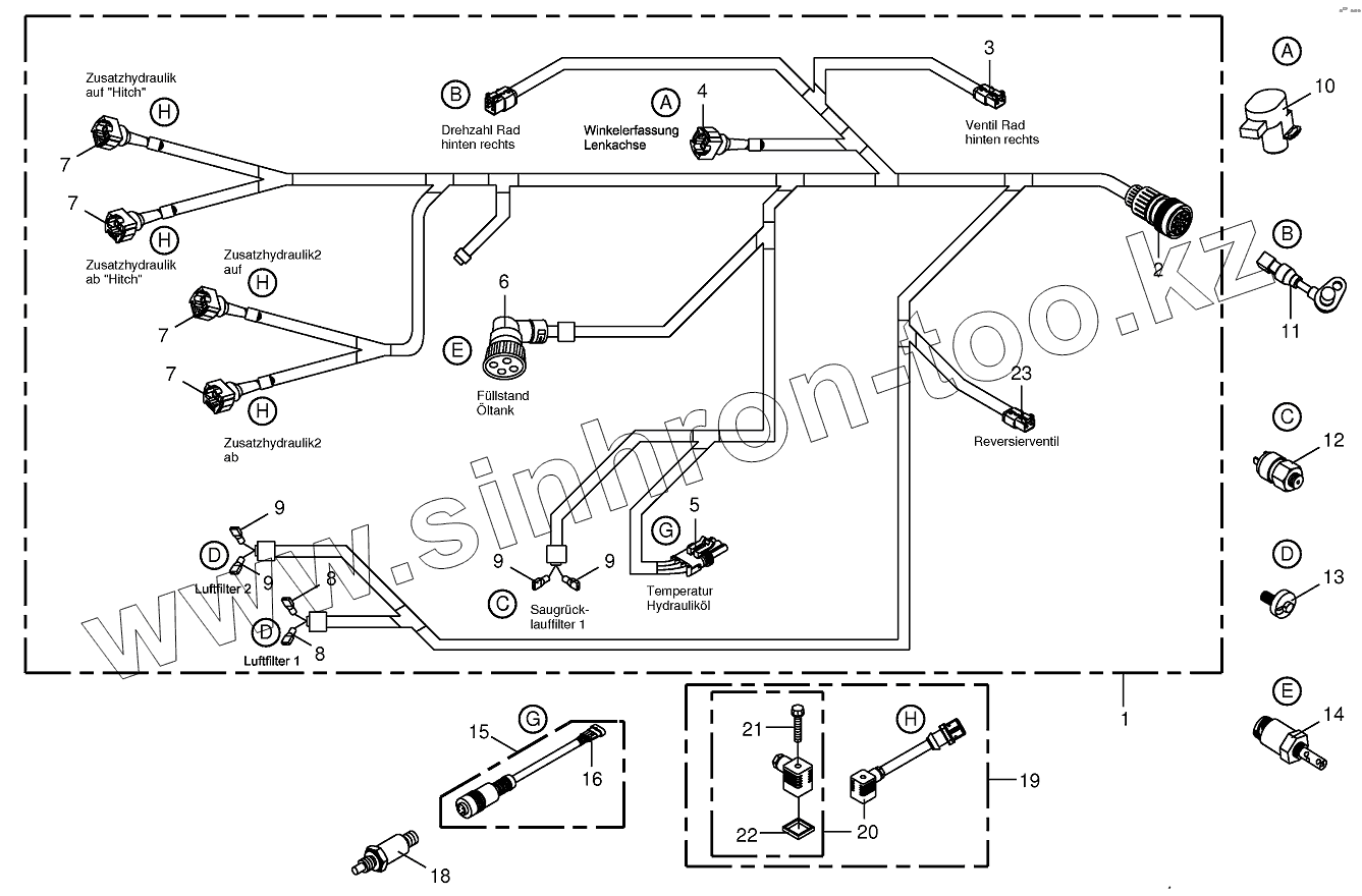 Каталог запасных частей к технике: KRONE BIG-X-700-1. Wiring Harness-rear/drive valve