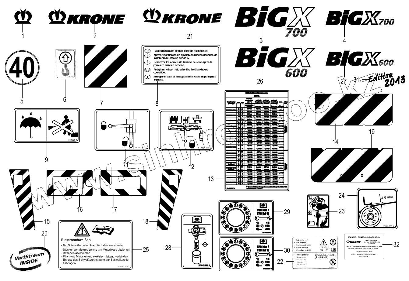 Каталог запасных частей к технике: KRONE BIG-X-700-1. General information labels