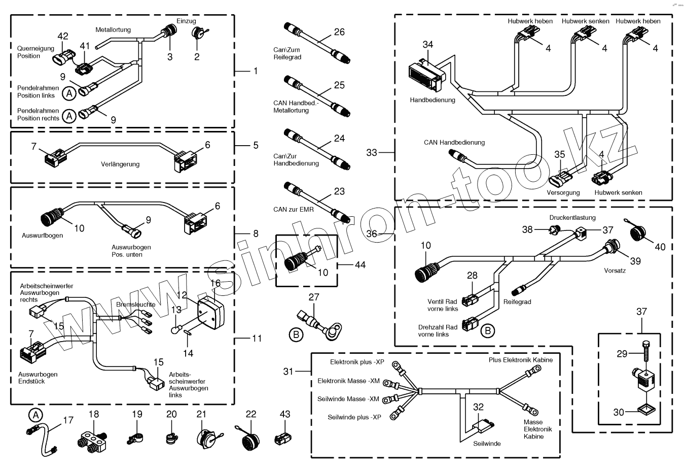 Каталог запасных частей к технике: KRONE BIG-X-700-1. Several wiring looms