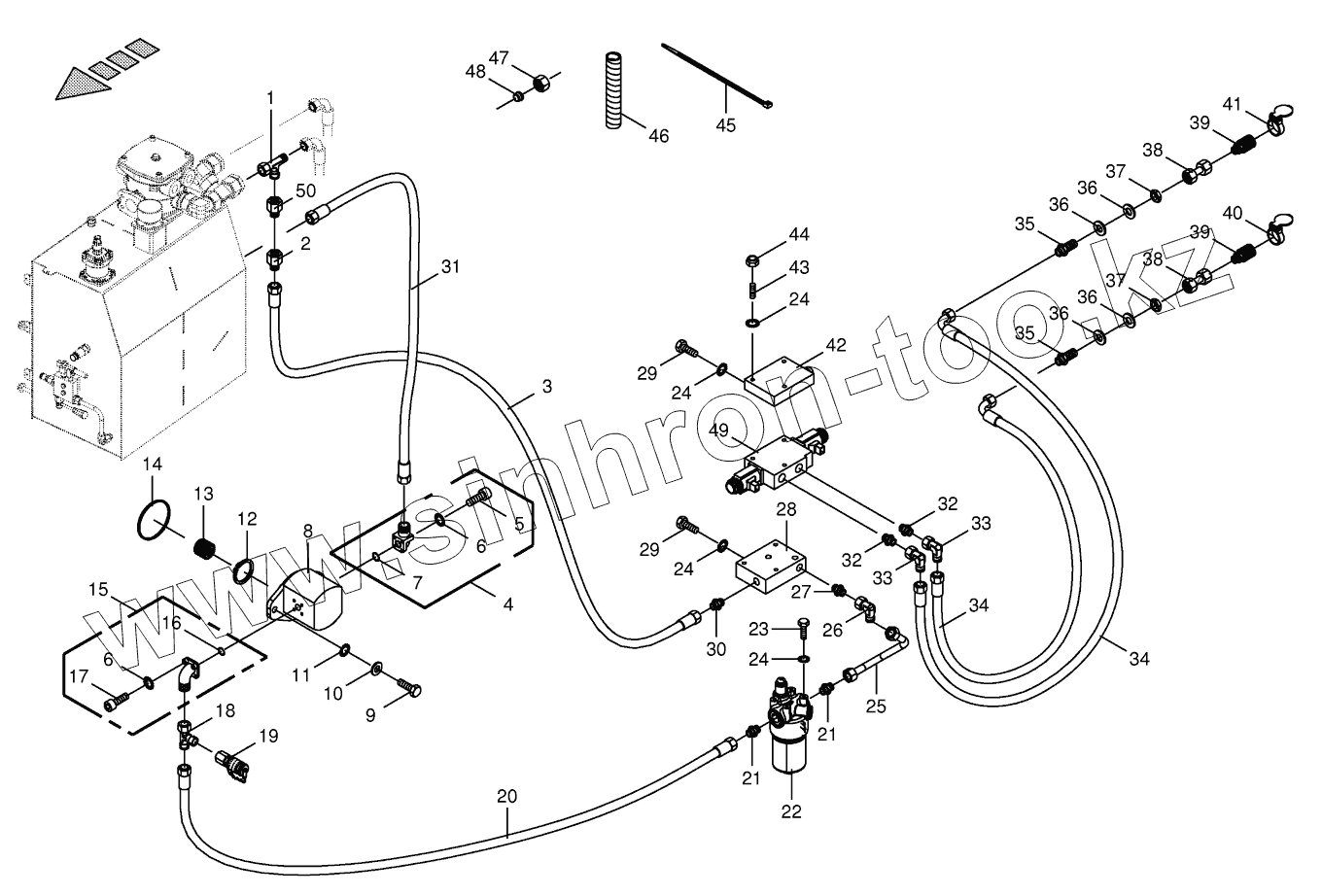 Каталог запасных частей к технике: KRONE BIG-X-700-1. Hydraulics - additive connection back 833001 - 879000
