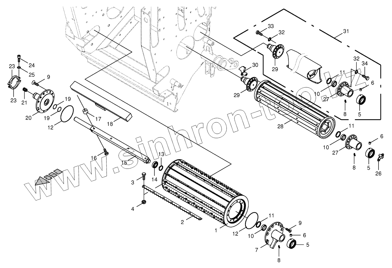 Каталог запасных частей к технике: KRONE BIG-X-700-1. Lower feed rollers