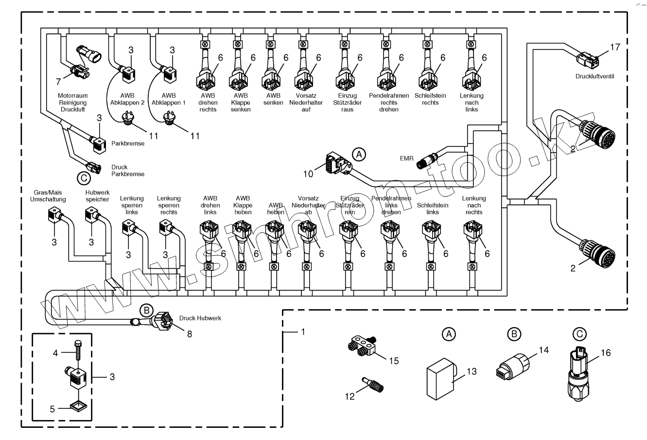 Каталог запасных частей к технике: KRONE BIG-X-700-1. Wiring Harness - valve block