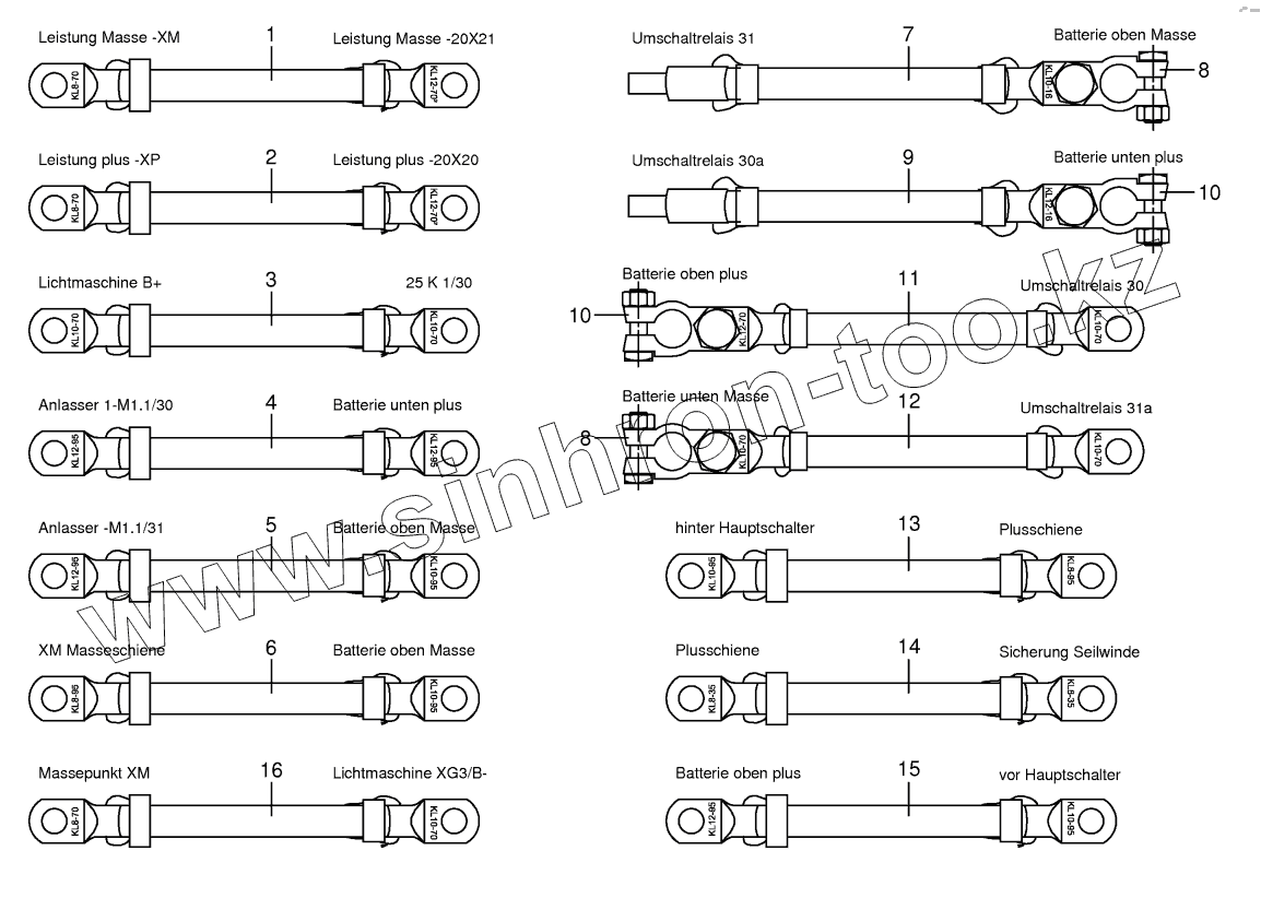 Каталог запасных частей к технике: KRONE BIG-X-700-1. Battery and ground cable