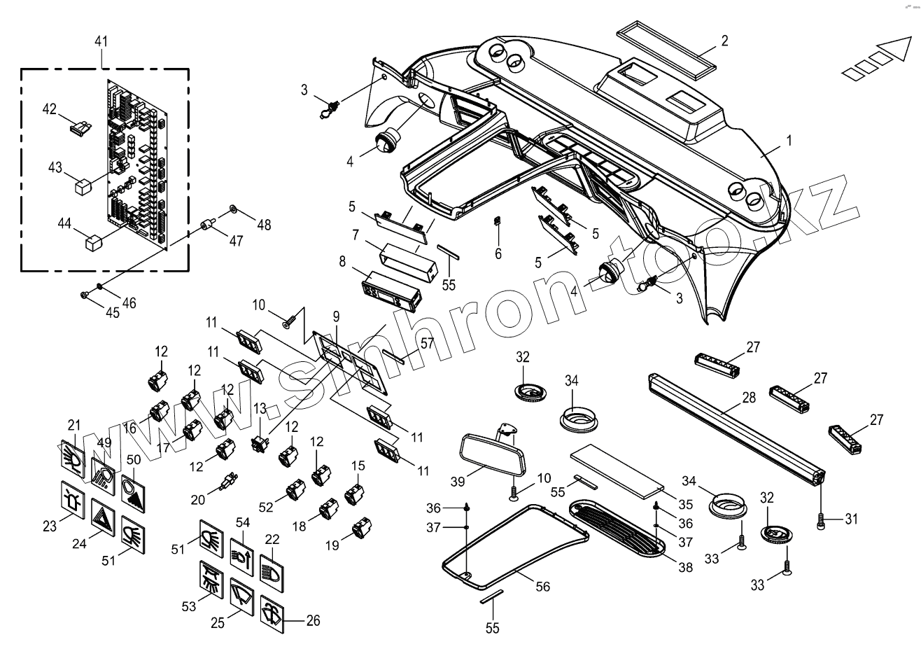 Каталог запасных частей к технике: KRONE BIG-X-700-1. Cab - control panel (roof) / circuit board
