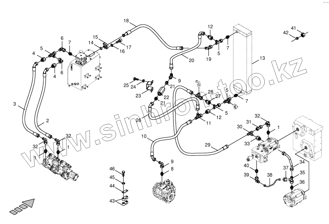 Каталог запасных частей к технике: KRONE BIG-X-700-1. Housing line / oil cooler